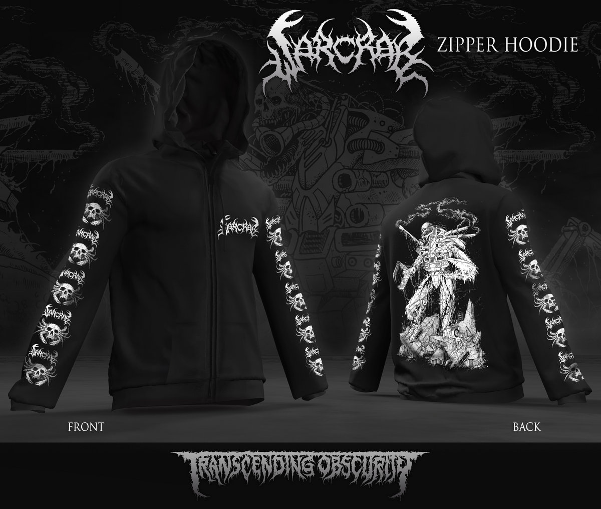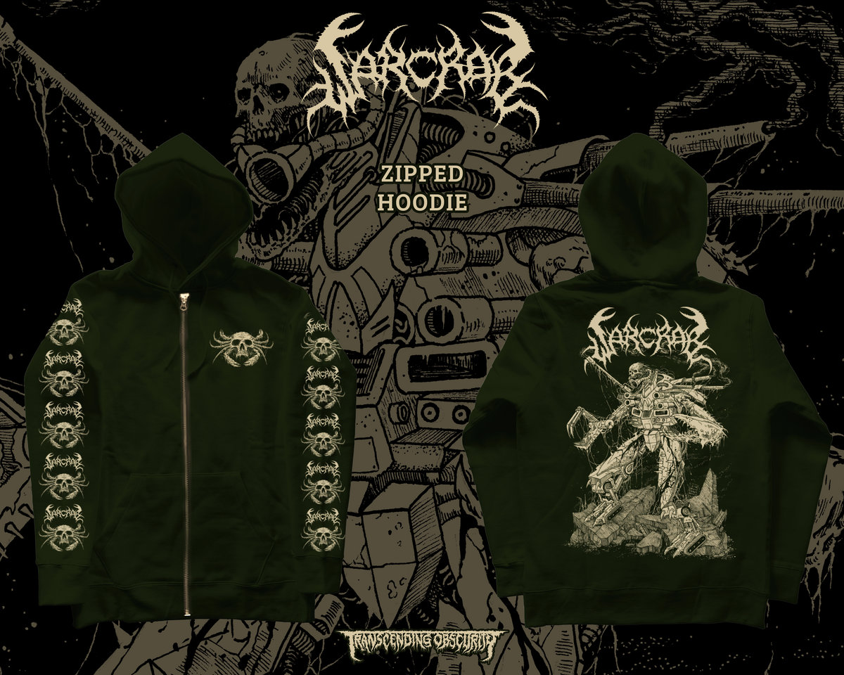 This is a rare olive green coloured high quality zipped hoodie for which soft 100% cotton material is used that is moreover pre-washed to avoid any shrinking issues. It has a long lasting metal zipper as well. There are prints on both the sleeves, one on the pocket of the special crab logo, and of course the killer artwork print on the back that's made by Mark Riddick.