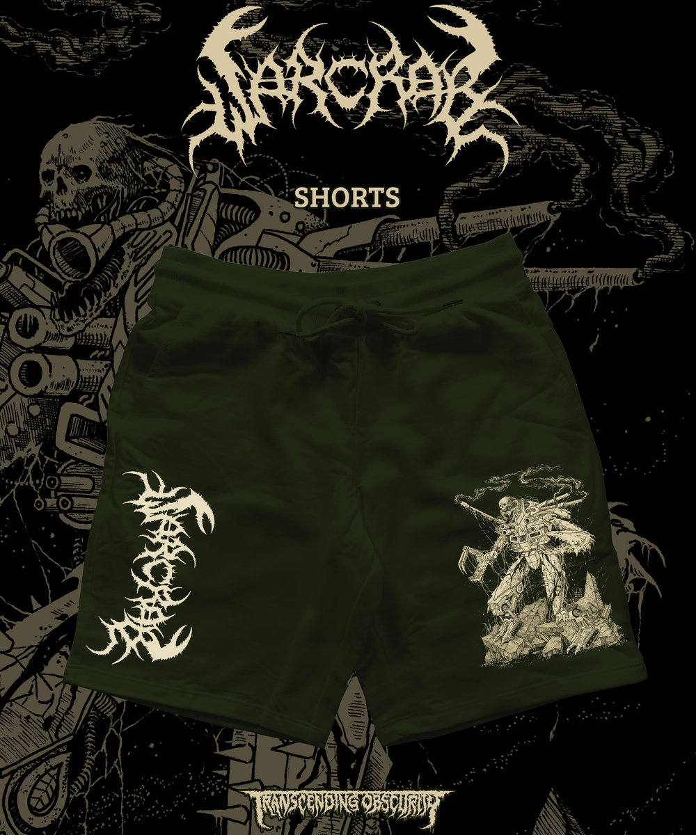 These are rare olive green coloured high quality shorts that are made from thick and soft 100% cotton material that's furthermore pre-washed to avoid any shrinkage issues. They come with a drawstring for comfortable fitting and have pockets on both sides. There's the band logo that's printed on the right side and part of the killer and fitting artwork print that's made by Mark Riddick on the left side which looks epic.